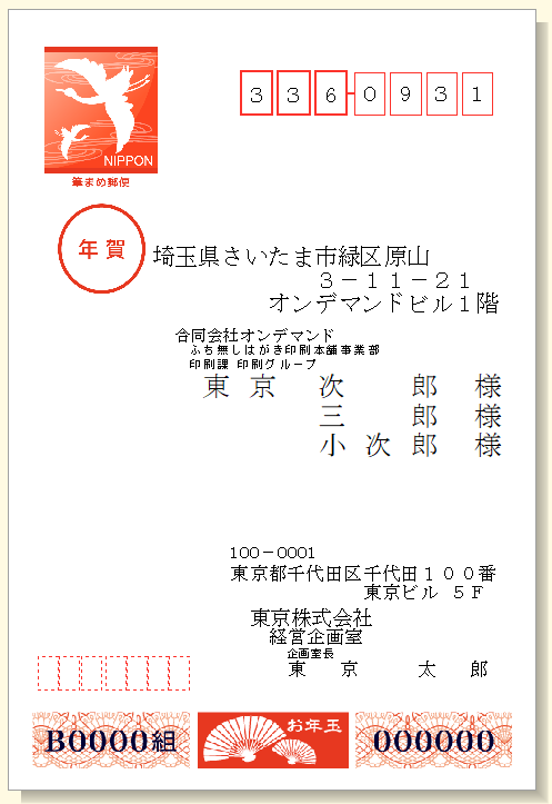 | 選択商品 | 印刷枚数 | 宛名印刷枚数 | 決済方法 |